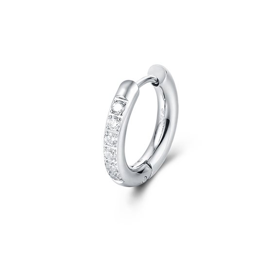 Orecchino scattino bombato versione acciaio con cristalli bianchi Materiale: Acciaio inossidabile ipoallergenico con cristallo CZ Diametro orecchino: 18 mm Spessore orecchino: 3 mm