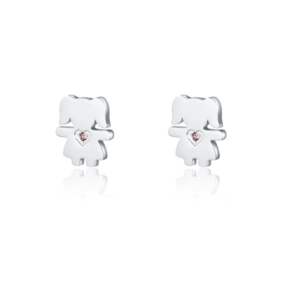 Orecchini lobo soggetto bimba con cristallino rosa Materiale: acciaio inossidabile, cristalli Altezza: 1 cm