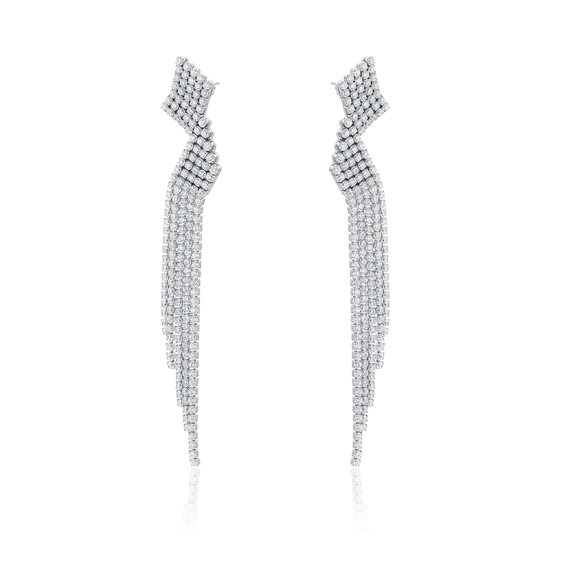 Orecchini tennis pendenti saetta - Orecchini tennis con diametro cristalli di 2 mm Fili pendenti a saetta, lunghezza massima dell’orecchino 10 cm Materiale: Acciaio inossidabile, ipoallergenico