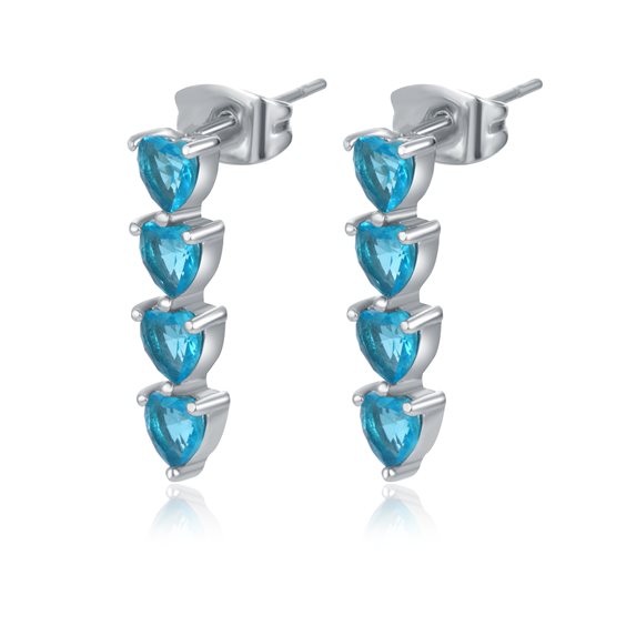 Orecchini con 4 cristalli a cuore pendenti turchesi Materiale: acciaio inossidabile, cristalli Dimensione cristallo: 4 mm Lunghezza orecchino: 2 cm