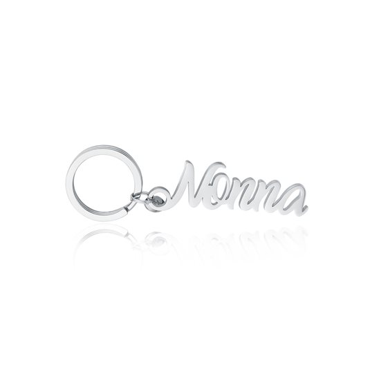 Portachiavi nonna sagomato Materiale: acciaio inossidabile, ipoallergenico testato per il nichel Lunghezza portachiavi: 5 cm Diametro brisè: 2,5 cm