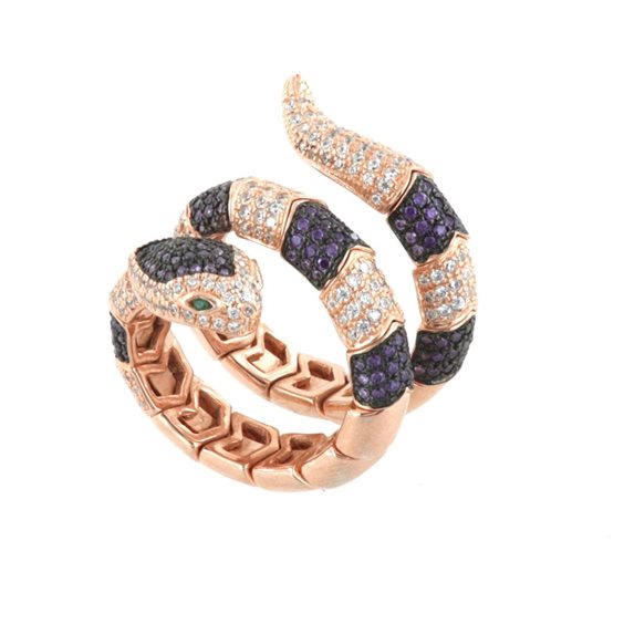 Anello serpente con cubi zirconi - Anello in Argento 925 - Pietra: Cubic zirconi - Galvanica: Placcato Oro Rosè