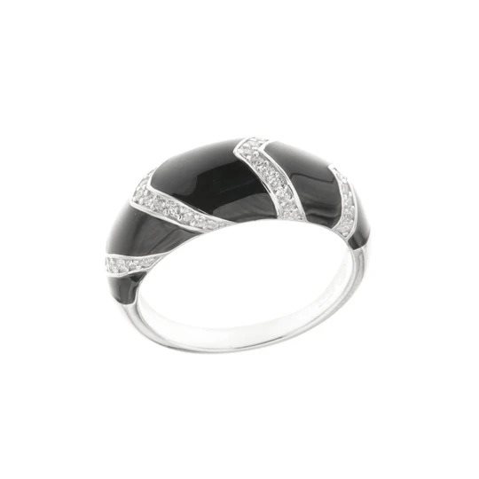 ANELLO IN ARGENTO SMALTATO NERO CON DETTAGLI IN ZIRCONI BIANCHI