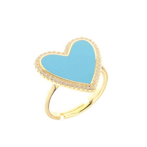 ANELLO IN ARGENTO A FORMA DI CUORE SMALTATO TURCHESE CON DETTAGLI ZIRCONI BIANCHI