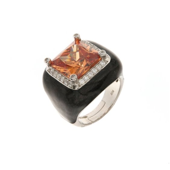 ANELLO IN ARGENTO SMALTATO COL NERO CON ZIRCONE CENTRALE COL TOPAZIO E ZIRCONI BIANCHI - MISURA REGOLABILE