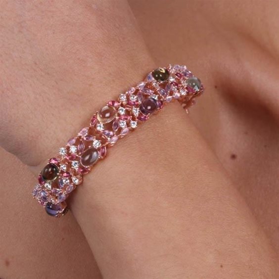 Bracciale in argento oro rosè con zirconi colorati