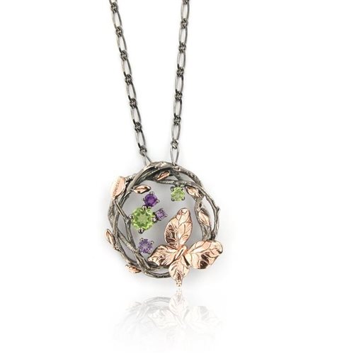 Collana da Donna in argento By Simon della Collezione Zaragoza, Collana pendente con pietre naturali, placcato brunito, multicolor.