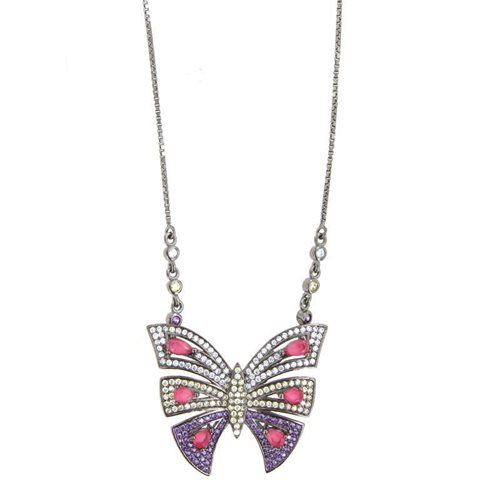 Collana da Donna in argento 925 BYSIMON della Collezione SINGAPORE, Collana con farfalla zirconata multicolore.