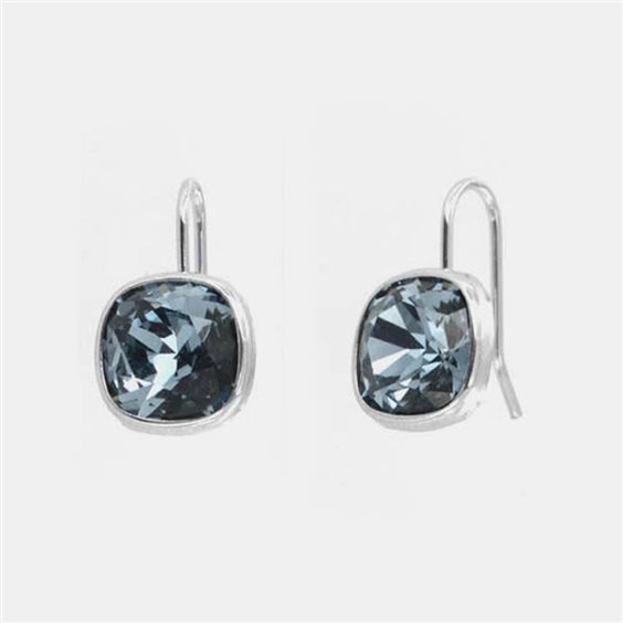 Orecchini in Argento 925 cristallo di forma quadrata, pendente blu denim, con aggancio a monachina Materiali: Argento, Pietra: Cristalli, Galvanica: Placcato Rodio,