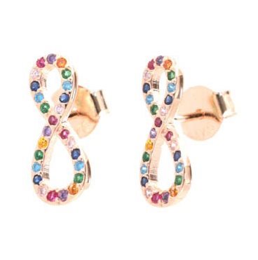 ORECCHINI IN ARGENTO 925 SIMBOLO INFINITO A LOBO, CON ZIRCONI MULTICOLOR