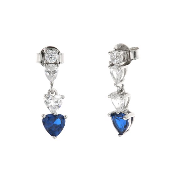 ORECCHINI IN ARGENTO 925 CON ZIRCONI PENDENTI A CUORI E ZIRCONE BLU ZAFFIRO