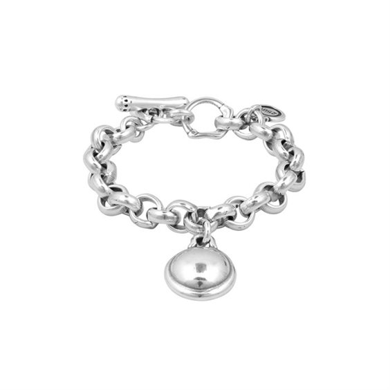 Bracciale con catena rolò spessa e charm pendente con sfera Taglia unica regolabile da 17 a 19 cm Un gioiello realizzato in metallo anallergico che ha un bagno d'argento da 15 a 20 micron. Ha una garanzia di 3 anni che copre difetti di fabbricazione e difetti di materiale. Ogni articolo viene consegnato con un sacchetto di stoffa che serve sia a preservare il pezzo che a recuperare la lucentezza originale del pezzo.Realizzato in metallo anallergico e placcato oro. Ha una garanzia di 3 anni su difetti di fabbricazione e difetti di materiale