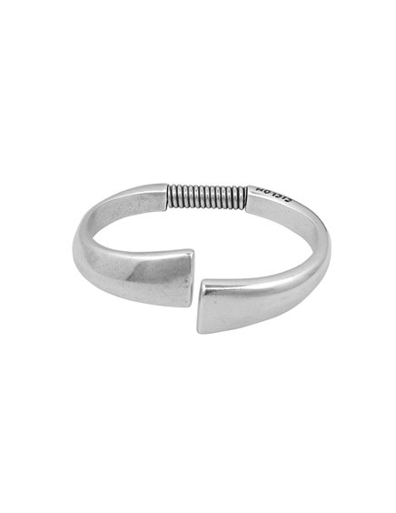 Bracciale Kala placcato argento della 25a Collezione di gioielli Ciclón. Bracciale a molla con design a due bracci incrociati e placca 25th. Taglia unica regolabile.