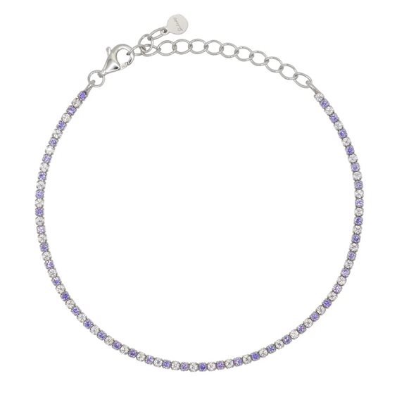 Bracciale in Argento 925 con zirconi lilla e bianchi alternati Misura: 17+3 cm Diametro: 1,5 mm Colore: Silver, Argento 925 Materiale: Argento 925 Pietra: Zircone Colore pietra: Lilla e bianco Modello: Tennis 1+1