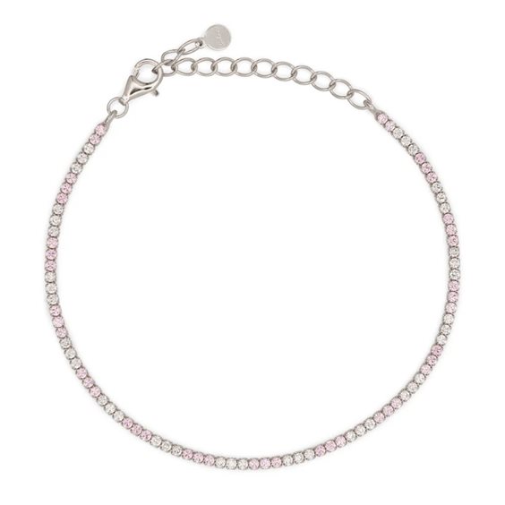 Bracciale in Argento 925 con zirconi rosa e bianchi alternati Misura: 17+3 cm Diametro: 1,5 mm Colore: Silver, Argento 925 Materiale: Argento 925 Pietra: Zircone Colore pietra: Rosa e Bianco Modello: Tennis 3+3