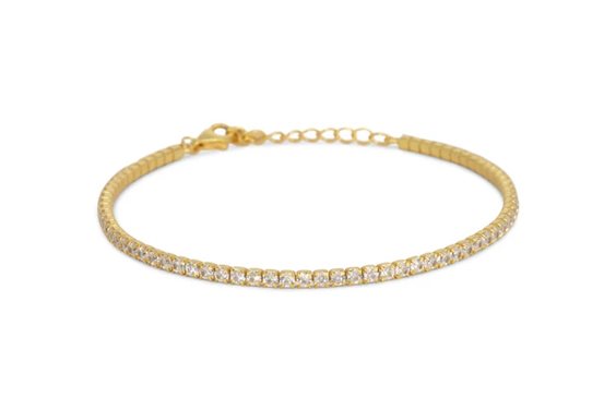 Bracciale in Argento 925 dorato con zirconi bianchi Misura: 17+3 cm Diametro: 2 mm Colore: Gold, Argento 925 Materiale: Argento 925 Pietra: Zircone Colore pietra: Bianco Modello: Tennis