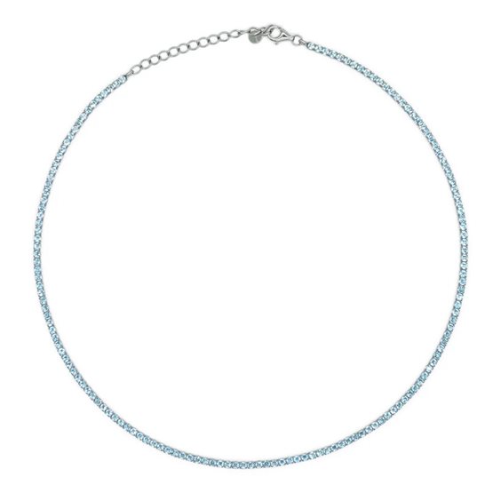 Misura: 36+5 cm Diametro: 2 mm Colore: Silver, Argento 925 Materiale: Argento 925 Pietra: Zircone Colore pietra: Acquamarina Modello: Chocker, Bracciale doppio giro Confezione: Originale Dilvdo