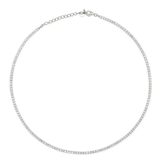 Misura: 36+5 cm Diametro: 2 mm Colore: Silver, Argento 925 Materiale: Argento 925 Pietra: Zircone Colore pietra: Bianco Modello: Chocker, Bracciale doppio giro Confezione: Originale Dilvdò