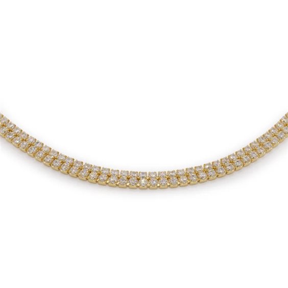 Collana Chocker 2 fili in Argento 925 dorato con zirconi bianchi Misura: 36+5 cm Diametro: 2+2 mm Colore: Gold, Argento 925 Materiale: Argento 925 Pietra: Zircone Colore pietra: Bianco Modello: Chocker, Bracciale doppio giro