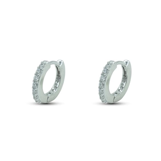 Orecchini a cerchio in Argento 925 con zirconi bianchi Diametro: 12 mm Colore: Silver, Argento 925 Materiale: Argento 925 Pietra: Zircone Colore pietra: Bianco Modello: Orecchini, Hoop ring