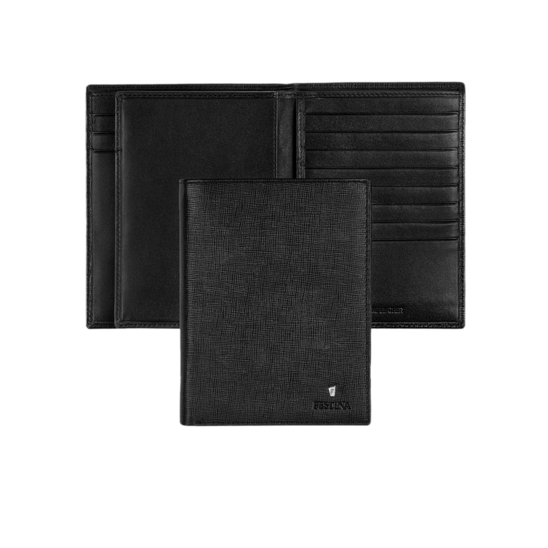 Portafoglio da viaggio in pelle nera con texture morbida all'esterno, con diverse tasche. Con un design classico, elegante e senza tempo ispirato al design unico degli orologi della collezione Chrono Bike.