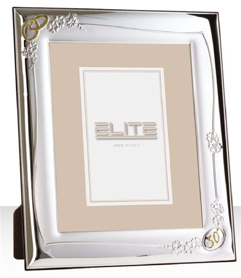 CORNICE ANNIVERSARIO 50° CON FIORI E FEDI RETRO LEGNO BIANCO