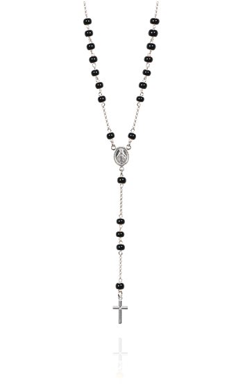 Collana Rosario in Argento con pietre in Ceramica nera uomo donna Collana Rosario RG01 completamente in Argento 925 impreziosito con pietre in Ceramica