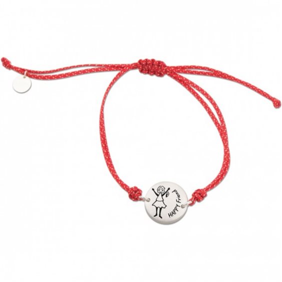 Bracciale Affetti per la fidanzata, realizzato con piastrina tonda centrale in argento 925 su cui è incisa l'immagine di una ragazza con la scritta 'Happy Love'. Il bracciale è poi completato da un cordino rosso in tessuto nautico con chiusura scorrevole per essere adattata a qualsiasi lunghezza del polso.Il gioiello si completa con una confezione con una dedica al proprio amore 'Ricordo ancora il giorno in cui ci siamo incontrati. Fin dal primo sguardo è stato amore e io continuo a innamorarmi di te ogni giorno di più. Indossa questo gioiello, Amore mio, per ricordarti che sei la cosa migliore che mi sia successa'.