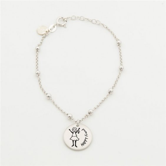 Bracciale in argento con medaglia con inciso Happy Friend. La confezione è corredata da una frase: Grazie perché ascolti le cose che dico, grazie soprattutto perché ascolti le cose che non dico. Grazie perché sei tu e grazie perché con te posso essere io. Indossa questo gioiello, AMICA mia, per ricordarti quanto tu sia speciale per me.