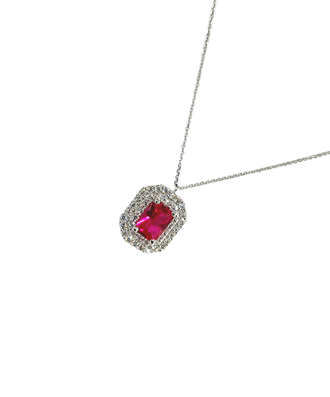 COLLANA IN ORO BIANCO 9KT CON ZIRCONE CENTRALE ROSSO