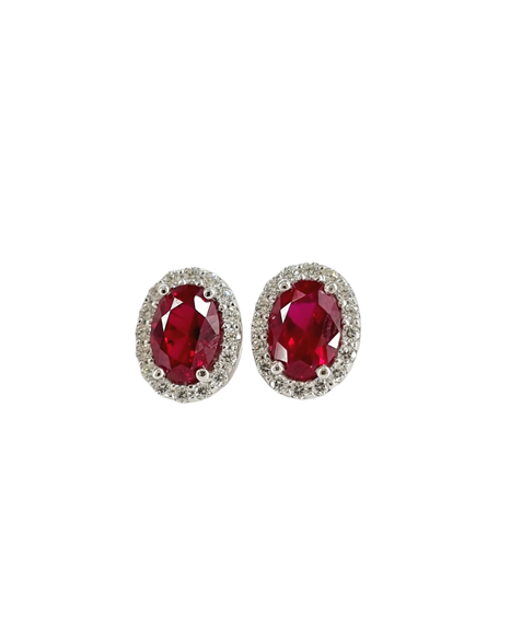 Orecchini Donna Kate Ovale MATERIALE: ORO 9KT MATERIALE SPECIFICO: ORO BIANCO PIETRA: ZIRCONI ROSSI CONTORNO: ZIRCONI BIANCHI