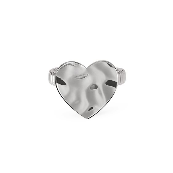 Anello con elemento a forma di cuore effetto martellato. • Dimensioni anello tubogas: 4 x 2 mm • Dimensioni cuore: 17 x 16 mm • Materiale: Acciaio 316L, Acciaio 304