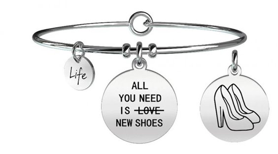 bracciale in acciaio 316L ipoallergenico 'ALL YOU NEED lS (LOVE) NEW SHOES'