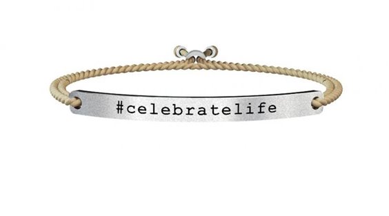 #Celebratelife :'Festeggia i momenti belli e sorridi anche nelle avversità. Celebra la vita, perché è la cosa più preziosa che hai. Ricordalo sempre.' bracciale in acciaio 316L ipoallergenico e nylon