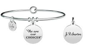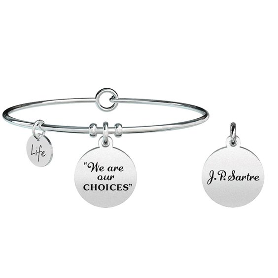 bracciale rigido. We are our choices. J. Paul Sartre . BRACCIALE IN ACCIAIO. CONFEZIONE ORIGINALE + GARANZIA KIDULT.