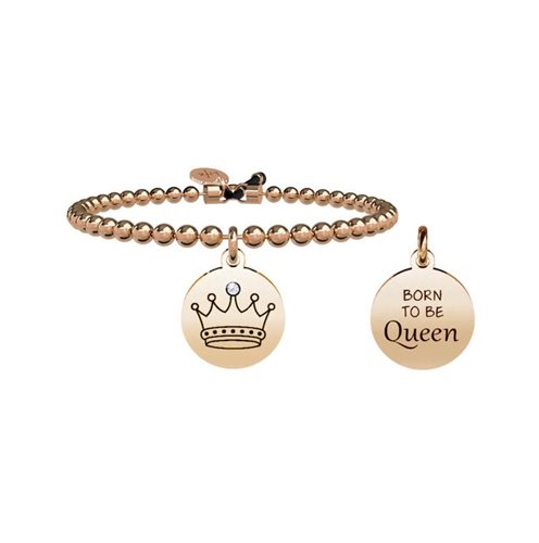 Bracciale in acciaio, pvd rose gold, smalto e cristallo, scritta:'Born to be queen'.