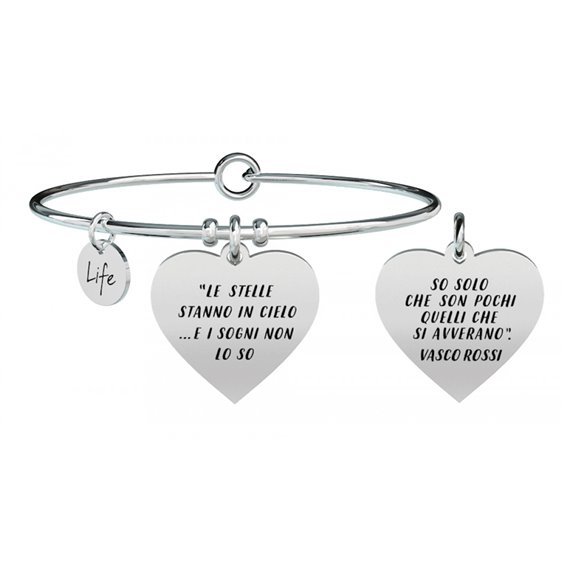 Bracciale in acciaio 316L ipoallergenico 'Le stelle stanno in cielo...e i sogni non lo so. So solo che son pochi quelli che si avverano'.