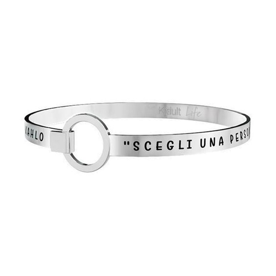 Bracciale Da Donna Di Kidult Della Collezione Love. Bangle In Acciaio Lucido Color Argento. Incisione Smaltata. Chiusura Tonda. Misura Unica: Diametro 6 Cm. Materiale: Acciaio 316L. Designed By Kidult In Italy. La Scritta Presente Nel Bracciale È " Scegli Una Persona Che Ti Guardi Come Se Fosse Una Magia. Frida Kahlo".