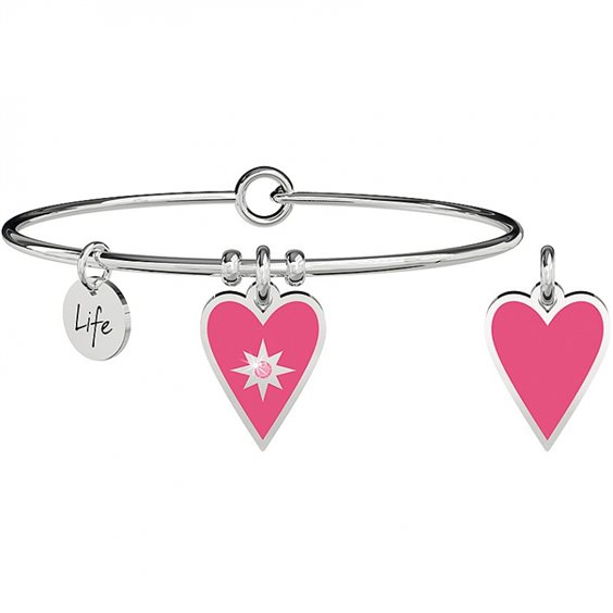 Bracciale Da Donna Della Collezione Love. Bangle In Acciaio Con Ciondolo A Cuore Smaltato Rosa. Gioiello Con Smalto Colorato Sul Ciondolo . Materiale: Acciaio 316L, Smalto. Gioiello Con Chiusura Tonda. Misura Unica, Diametro 6 Cm.