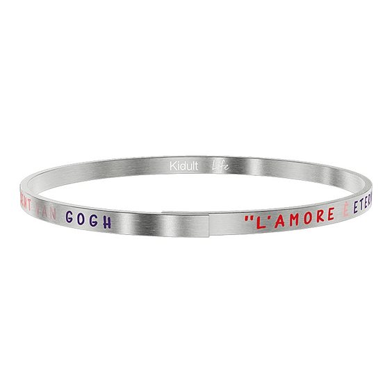 Bracciale kidult rigido in acciaio ipoallergenico con incisione colorata. " L'amore è eterno: può cambiarne l'aspetto, ma non l'essenza."