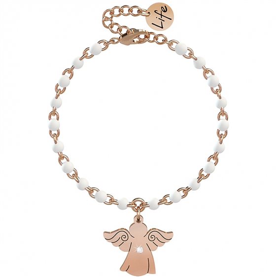 Bracciale Da Donna Di Kidult Della Collezione Spirituality. Bracciale In Acciaio Color Oro Rosa Con Ciondolo Ad Angelo E Catena Rolò Con Inserimenti In Smalto Bianco. Gioiello Con Incisione Smaltata E Cristallo Sul Ciondolo E Inserimenti In Smalto Sulla Catena . La Frase Incisa È: Con Lui Al Tuo Fianco Più Sicuro È Il Sentiero Del Tuo Cammino. Affronta La Vita Libero Di Seguire Il Tuo Istinto Perché Avrai Sempre Accanto Chi Ti Protegge.. Materiale: Acciaio 316L Con Pvd Oro Rosa, Cristallo. Gioiello Con Chiusura Con Moschettone. Misura Regolabile, Lunghezza Da 16 Cm A 19 Cm. La Referenza È 731822 Questo bracciale verrà spedito con Scatola Originale Kidult