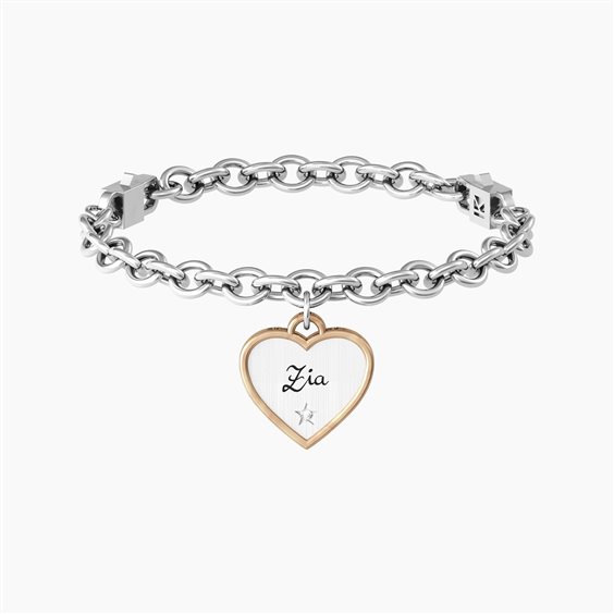 Bracciale Da Donna Di Kidult Della Collezione Family. Bracciale In Acciaio 316L Con Catena Rolò Misura Regolabile Sistema "Comfort Fit" (16 Cm / 17.5 Cm / 19 Cm ), Ciondolo Cuore In Acciaio Satinato E Bordo In Pvd Rosè Lucido. Scritta: Zia Ti Voglio Bene. Dimensioni: Maglia 6.40X5.40 Mm, Cuore 17X17.50 Mm, Cristalli Ø 1.50 Mm. Frase: Sei La Migliore Zia Che Potessi Desiderare. Ti Voglio Bene!.