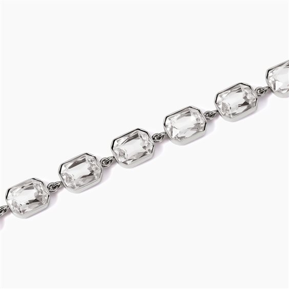 Bracciale regolabile con cristalli rettangolari bianchi. • Dimensione cristalli: 10 x 8 mm • Misura regolabile, lunghezza da 17,5 a 20 cm • Materiale: Acciaio 316L, Cristalli