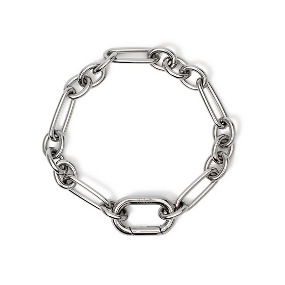 Bracciale in acciaio dorato con catena a maglie alternate. • Dimensione catena: 8 mm • Misura unica, lunghezza 19 cm • Materiale: Acciaio 316L