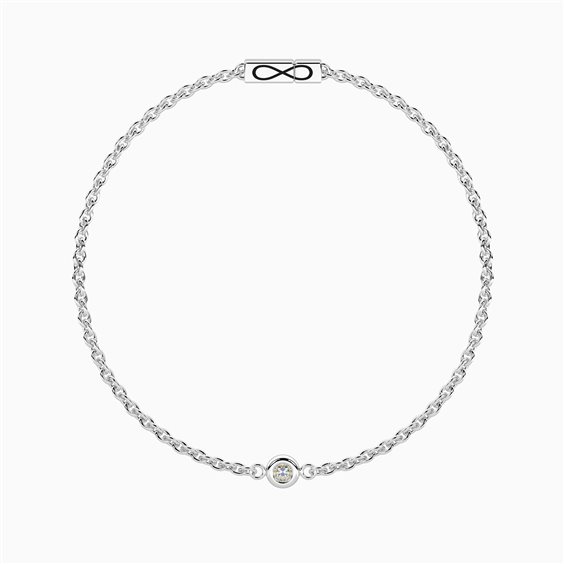 Bracciale con diamante lab-grown e chiusura non-reversibile - Diamante Bracciale unisex con catena forzatina in acciaio taglia 19. Diamante Lab-Grown centrale, chiusura non-reversibile con simbolo dell'infinito. • Lunghezza: 19 mm • Dimensione catena: 1,5 mm • Diametro Diamante Lab-Grown: 2 mm • Materiale: Acciaio 316L, Diamante Lab-Grown • Il bracciale Infinity è dotato di una chiusura non-reversibile. Unisci le due estremità, forma il simbolo dell’infinito