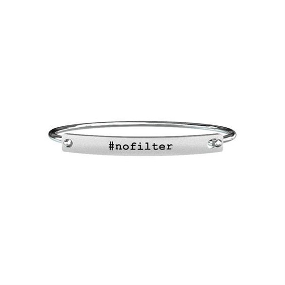 Bracciale Kidult Rigido, collezione Philosophy, in acciaio 316L lucido e satinato. Incisione: '#nofilter'. Bracciale ovale per calzare meglio al polso, diametro 5.5 x 6.5 cm.