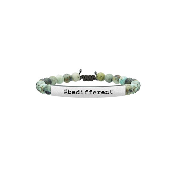 Bracciale Kidult acciaio anallergico 316L e turchese con dicitura #BEDIFFERENT Chiusura regolabile con cordino