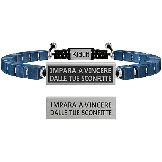Bracciale Da Uomo Di Kidult Della Collezione Philosophy. Bracciale Con Cubi In Dumortierite Blu E Piastra Rettangolare In Acciaio Di Colore Nero... La Frase Incisa È: Impara A Vincere Dalle Tue Sconfitte. Materiale: Acciaio 316L Con Pvd Nero, Dumortierite, Nylon. Gioiello Con Chiusura Con Cordino. Misura Regolabile, Diametro Da 6 A 8 Cm. La Referenza È 731785 Questo bracciale verrà spedito con Scatola Originale Kidult