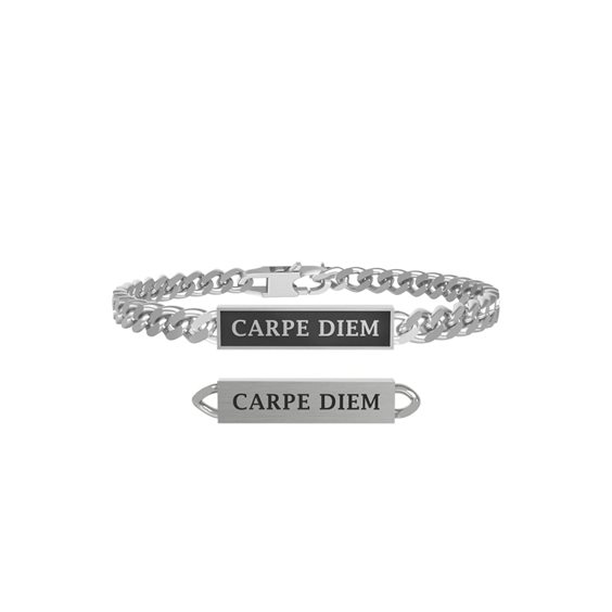 Bracciale Da Uomo Di Kidult Della Collezione Philosophy. Bracciale In Acciaio Satinato Con Catena Groumette E Piastra Rettangolare Di Colore Nero... La Frase Incisa È: Vivi, Agisci, Ora, Adesso. Perché Il Passato È Passato E Domani Sarà Già Troppo Tardi. La Vita È Una Sola E Ogni Istante Merita Di Essere Vissuto Al Massimo.. Materiale: Acciaio 316L Con Pvd Nero. Gioiello Con Chiusura Con Moschettone. Misura Unica, Lunghezza 21 Cm. La Referenza È 731805 Questo bracciale verrà spedito con Scatola Originale Kidult