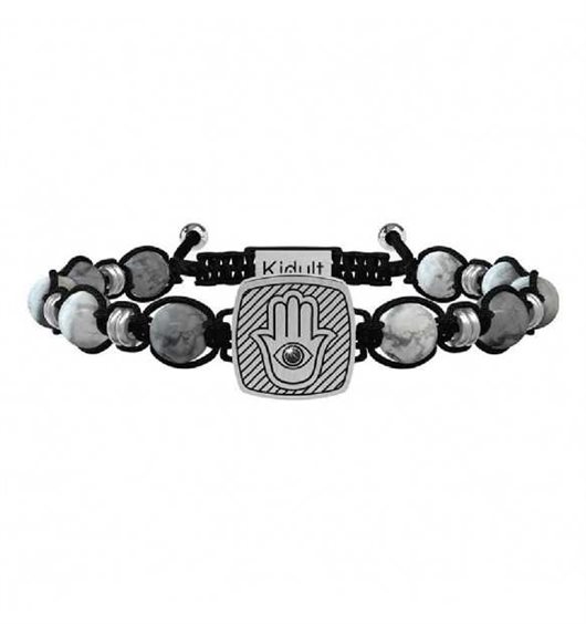 Bracciali Da Uomo Di Kidult Della Collezione Spirituality. Bracciale Con Anelli In Agata Grigia E Piastra In Acciaio Satinato. Incisione Smaltata. Chiusura Con Cordino. Misura Regolabile, Diametro Da 6 A 8 Cm. Materiale: Acciaio 316L, Agata Grigia, Nylon. Frase Prodotto: Mano Misteriosa Che Viene Da Lontano, Talismano Senza Tempo Che Protegge Chi Lo Indossa Da Qualsiasi Sfortuna. Bracciale con pietre naturali, i colori possono variare tonalità.
